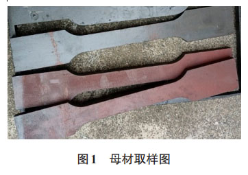 加載初期,隨著荷載增大,試件被輕微拉長(zhǎng),橫截面出現(xiàn)縮小跡象。隨著荷載進(jìn)一步增大,試件變形量增大。加載到最大值時(shí),試件出現(xiàn)頸縮現(xiàn)象,最終斷裂。試驗(yàn)過程中,試件從開始加載到破壞,伴隨有兩次響聲,第一次是鈦-鋼界面分離,第二次是試件斷裂??梢?,鈦鋼復(fù)合板材的基層和復(fù)層在拉伸過程中能協(xié)同工作。試件各實(shí)測(cè)數(shù)據(jù)見表2。