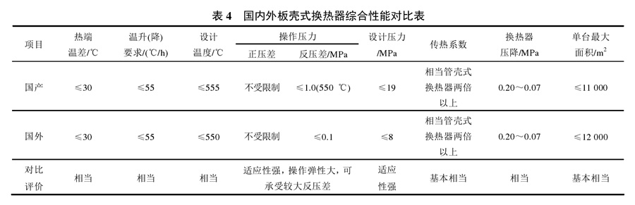 (5)  國產(chǎn)大型板殼式換熱器的綜合性能已經(jīng)達 到國外先進水平,國內(nèi)外性能對比如表 4 所示。