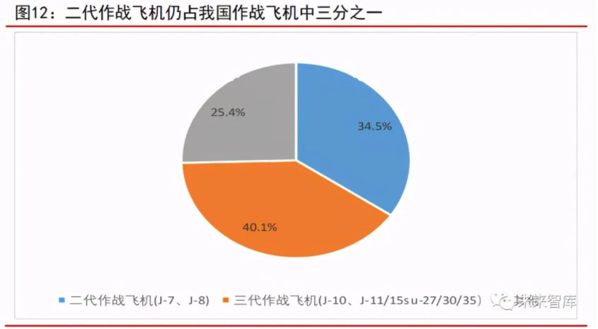 我國仍有三成比例作戰(zhàn)飛機是二代作戰(zhàn)飛機。這里作戰(zhàn)飛機包含有戰(zhàn)斗機、戰(zhàn) 斗轟炸機、強擊機、戰(zhàn)略轟炸機等裝備有進(jìn)攻性武器系統(tǒng)的固定翼戰(zhàn)機。我國作戰(zhàn) 飛機中,有 J-7、J-8 二代作戰(zhàn)飛機 561 架,占我國作戰(zhàn)飛機比例高達(dá) 34.5%;三代 作戰(zhàn)飛機 J-10 有 260 架、J-11/15su-27/30/35 有 391 架,合計 651 架,占我國作 戰(zhàn)飛機比例為 40.1%。美國作戰(zhàn)飛機基本上是三代以上作戰(zhàn)飛機,并擁有四代作戰(zhàn) 飛機 F-22 178 架,F(xiàn)-35 214 架。二代作戰(zhàn)飛機已經(jīng)不適合現(xiàn)代戰(zhàn)爭,隨著我國第 三代作戰(zhàn)飛機日趨成熟,新型戰(zhàn)機殲-16,殲-10c 以及五代隱身戰(zhàn)斗機殲-20 的相 繼服役,未來二代作戰(zhàn)飛機將逐漸退役。